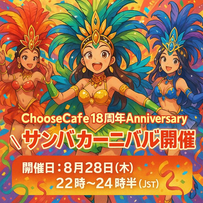 【チラ見せ告知】8月28日(木)chooseCafe18周年記念開店で「サンバカーニバル」開催致しますhttps://t.co/XuHwJnnVzv