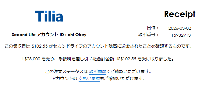 リンデンドルを米ドルに置き換えた時にTilia(ティリア)からこんな確認メールが来ます。